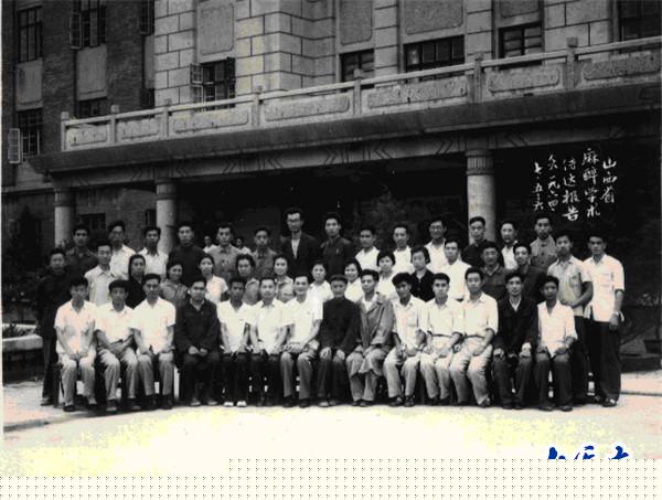图为1964年7月5日至6日,山西省麻醉学术传达报告会参会代表合影。图中第一排左七为王大柱,曾任第一医院麻醉科主任。第二排左五为张秀茹,曾任麻醉科主任、麻醉科手术室党支部书记;左八为谭淑英,麻醉科副主任医师;右七为尹天琛,曾任麻醉科主任。