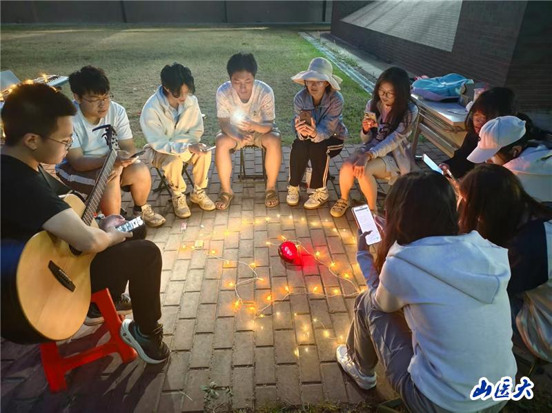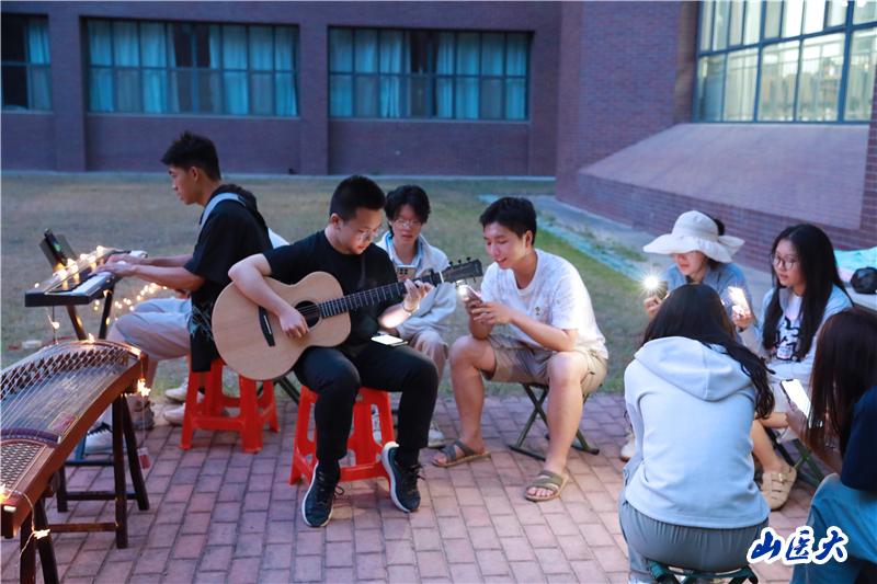 活动以“音为有你,心向阳光”为主题,通过音乐与互动游戏相结合的形式,为师生带来了一场治愈心灵的夏日盛宴。自由表演环节迅速点燃气氛。参与者即兴演奏吉他、电子琴、古筝等乐器,在草坪上留下创意打卡瞬间,歌手们不拘泥于独唱,借助音响与灯光,与同学们围坐在一起,共同唱响喜爱的音乐,温馨的氛围治愈着每一位同学。随后,全场观众在吉他伴奏下合唱经典童谣《童年》,悠扬的歌声与晚风交织,传递出纯真与温情。光与音乐交织中,有人随节奏摇摆,有人用手机记录美好瞬间,欢声笑语中卸下疲惫,共享轻松时光。