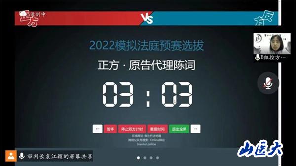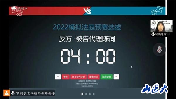 模拟法庭大赛以一例虚构刑事案件为例,严格按照规定庭审流程进行,模拟再现了开庭、法庭调查、法庭辩论、宣判等刑事诉讼庭审环节。在法庭辩论环节,控辩双方紧密围绕案件争议焦点和案件证据,以事实为依据、以法律为准绳,各抒己见,据理力争。双方参赛同学虽然作为非法学专业学生,在法律理论和诉讼实践方面略显稚嫩,但同学们反应敏捷、逻辑清晰、协作紧密,通过陈述、举证、质证、发言、辩论等环节博弈,展现了山医学子思辨合理、逻辑精准、理论严谨的理性风采。