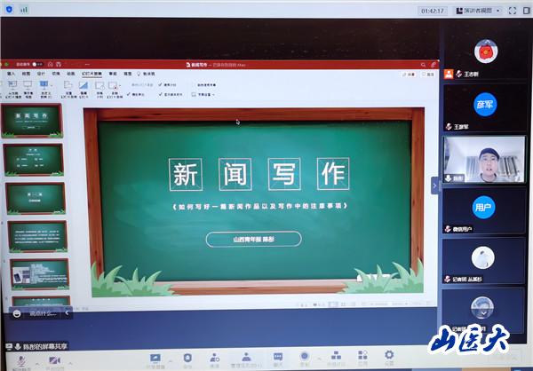 为提高学生社团记者的新闻写作与摄影水平,增强新闻素养和创新能力,12月4日晚,校党委宣传部特邀山西青年报优秀记者陈彤与山西省著名摄影家梁铭,通过线上腾讯会议平台举办了学生记者新闻能力提升培训会。校报、校电视台、校广播站、校微博协会等学生社团成员及校党委宣传部相关人员等共计280余人参加了会议。
