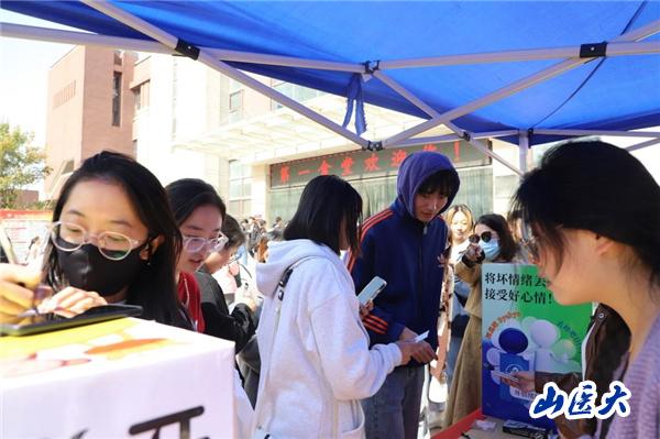 10月10日,人文社会科学学院的同学进行了以“快乐循环”为主题的小活动,同学们在工作人员的指导下写下近期的烦恼,投递到“垃圾桶”中,并在旁边的祝福之箱中抽取“今日好运”。