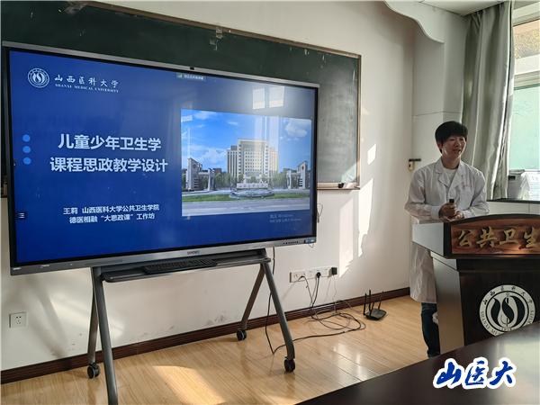 王莉以《“少年强,则国强”——儿童少年卫生学课程思政教学设计》为题,从课程概述、思政设计、教学实施和教学成效四方面分享了儿童少年卫生学课程思政的建设过程及实施情况。课程以“少年强,则国强”为贯穿课程的特色思政理念,根据拟定的课程思政教学大纲,采用思维导图的形式,充分展示了如何将思政元素与知识点有机结合融合。课程基于培养维护和促进儿童少年健康的卫生工作者的总体目标,以具有亲熟感的身边人和身边事为例,在激发学生学习热情的同时,着重从健康中国、职业使命、团队协作等多方面对医学生进行德育引领。