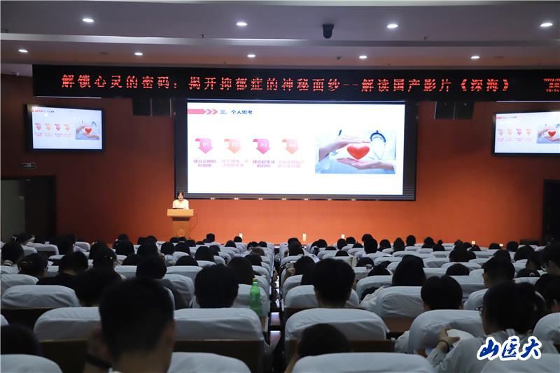第一场观影会中,由管理学院22级智能医学工程专业戚晶晶同学担任影片推介人和讲座主讲人。她在我校心理健康教育教师的专业指导下,充分查阅、学习心理学知识,结合电影故事情节,深度剖析了电影中的心理元素,详细解读了主人公的心理特征。她还从朋辈心理互助的角度,交流了自己对心理健康的看法和建议,鼓励和倡议同学们关注自己的心理状态,学会调节情绪、缓解压力,保持积极乐观的心态。 第二场观影会邀请中国心理学会临床与咨询专业注册系统注册心理师、我校2009届公共事业管理专业校友王辉为学生们提供有针对性的心理指导。她结合电影主人公遭遇的各种人生困境,就职业发展中突破无意义感、克服适应障碍及人际冲突等方面做了解读,为学生们提供了实用的职业规划和心理调适建议。