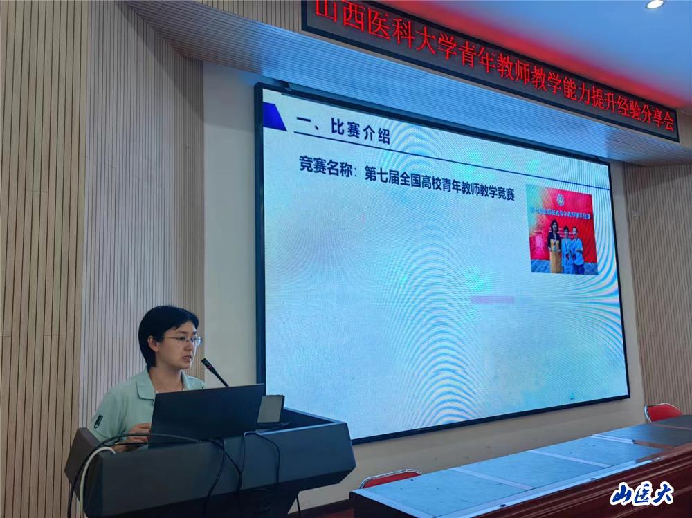 张爱平教授是本次省级青教赛医科组的评委组长,分享会上她以“如何提升教学能力”为题,从练就扎实教学基本功、如何规范书写教案、如何准备教学比赛、如何规范制作PPT四个方面进行了讲述,并就如何上好一节课给青年教师做出了具体指导;龙女老师是本次全国青教赛医科组二等奖的获得者,她从比赛规模、备赛时间、材料提交、违纪处理等多方面分析竞赛变化,从“熟”悉教学内容、多方面“能”力提升、无“生”课堂教学如何进行有效的互动、“巧”妙的教学设计四方面,分享了宝贵的教学竞赛实战经验。
