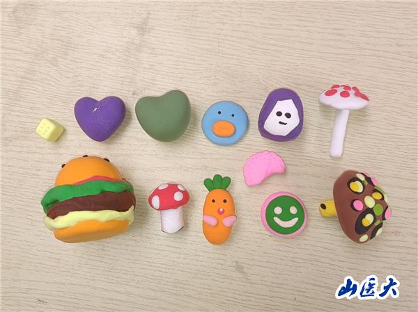所有游戏中最引人驻足的莫过于“‘粘’走不开心”,同学们来到棚子中,用粘土塑造图案,共同完成了一些作品,希望这些作品能够为同学们带去战胜焦虑的信心与力量。