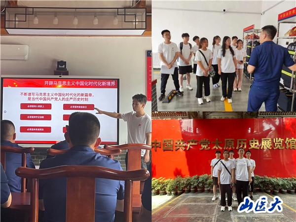 6月27日,深入太原市晋源区古城消防救援站开展联学共建活动,近距离了解了火灾隐患及预防,认识了不同种类的消防器材,进一步加深了消防知识。通过观看真实的救火救援案例,同学们切实感受到消防员职业的辛苦与危险,向逆火而行的消防英雄表达敬意。为了让消防队员更深切地了解和学习消防急救的知识,让消防急救为保护人民生命健康筑起一道坚实防线,同学们就烧伤、紧急心肺复苏、消防员灾后心理疏导等多方面内容进行了交流分享。同学们还进行了党的二十大精神宣讲活动,与消防队员一起学党史、忆峥嵘、感党恩。