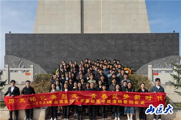 清明前夕,为弘扬爱国主义精神,开展革命传统教育,基础医学院在晋中烈士陵园举行主题为“历史铭记英烈志,青春筑梦新时代”的清明祭扫仪式。基础医学院党委书记王卓、副书记刘霞、思想政治辅导员、学生党员、本硕博优秀学生代表100余人参加了活动。