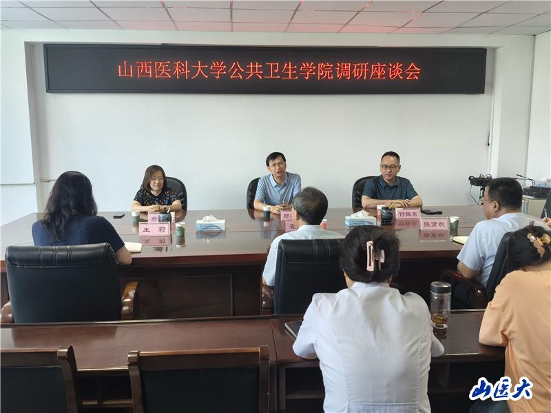 6月24日上午,我校公共卫生学院党委副书记蔚钰琼、副院长邱服斌等一行三人赴晋中市疾病预防控制中心调研交流。晋中市疾病预防控制中心主任霍卫平等领导班子成员及相关科室负责人参加了座谈会。双方重点围绕开设研究生公共卫生实践课程、行业导师遴选、拓展研究生就业岗位等议题进行了深入探讨。